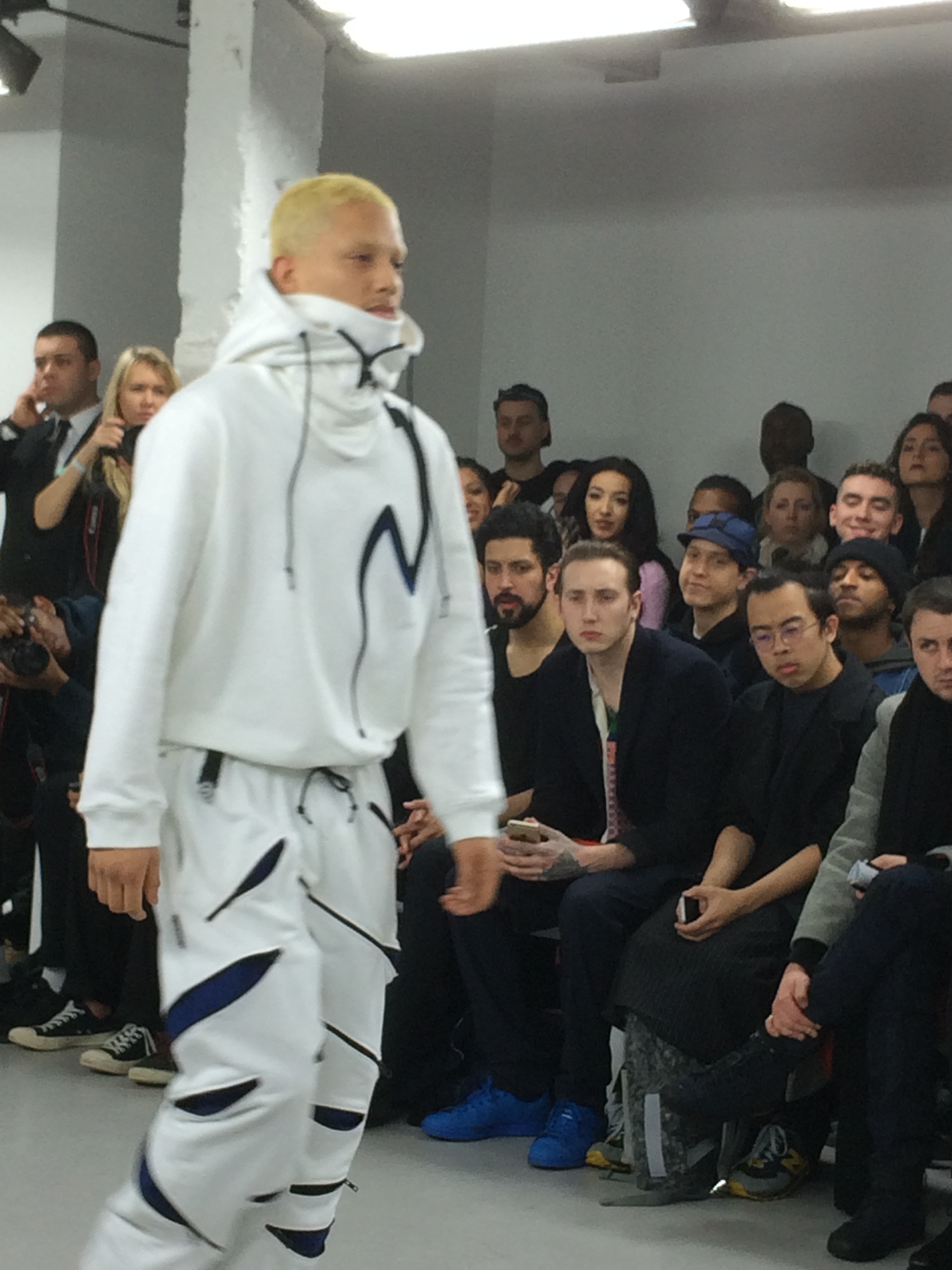 Meanwhile, designer Clint 419 steps out in the Indigo Polypropylene Denim Coach Jacket, made from a 14oz denim tela woven that looks classic but feels unexpectedly light. The secret lies in polypropylene, one of the lightest fibers on earth. The result is a garment that keeps its structured denim appearance but weighs far less. With patch chest pockets, metal hardware, and discreet star embroidery on the cuff, it’s a study in functional precision.