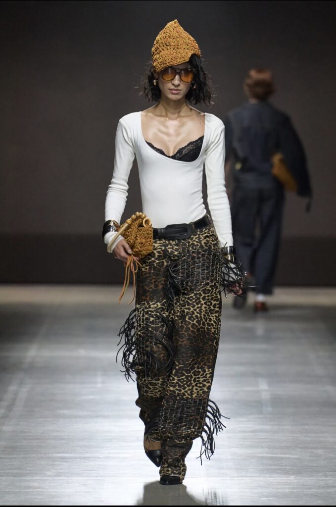On the collection, “I think the best one for me and my standout one was the tiger print, the leopard print pants with the beaded legs,” he says. James showed a women’s collection in February, but not in Milan. “We did it in Lagos because it was a celebration of our 10 years of existence as a brand,” he noted.